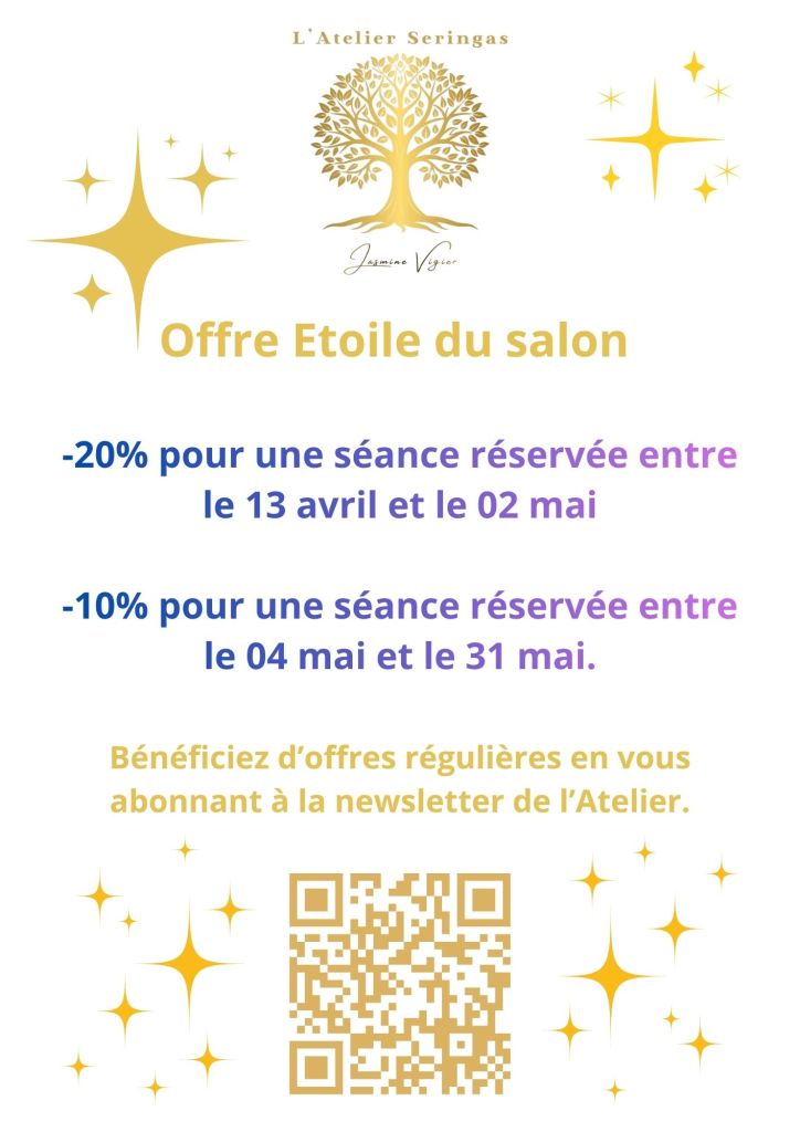 En lien avec ma présence en tant qu’exposante au Salon d’Etoile S/ Rhône le WE du 11 et 12 avril! Venez me rencontrer et bénéficier de cette offre exclusive!